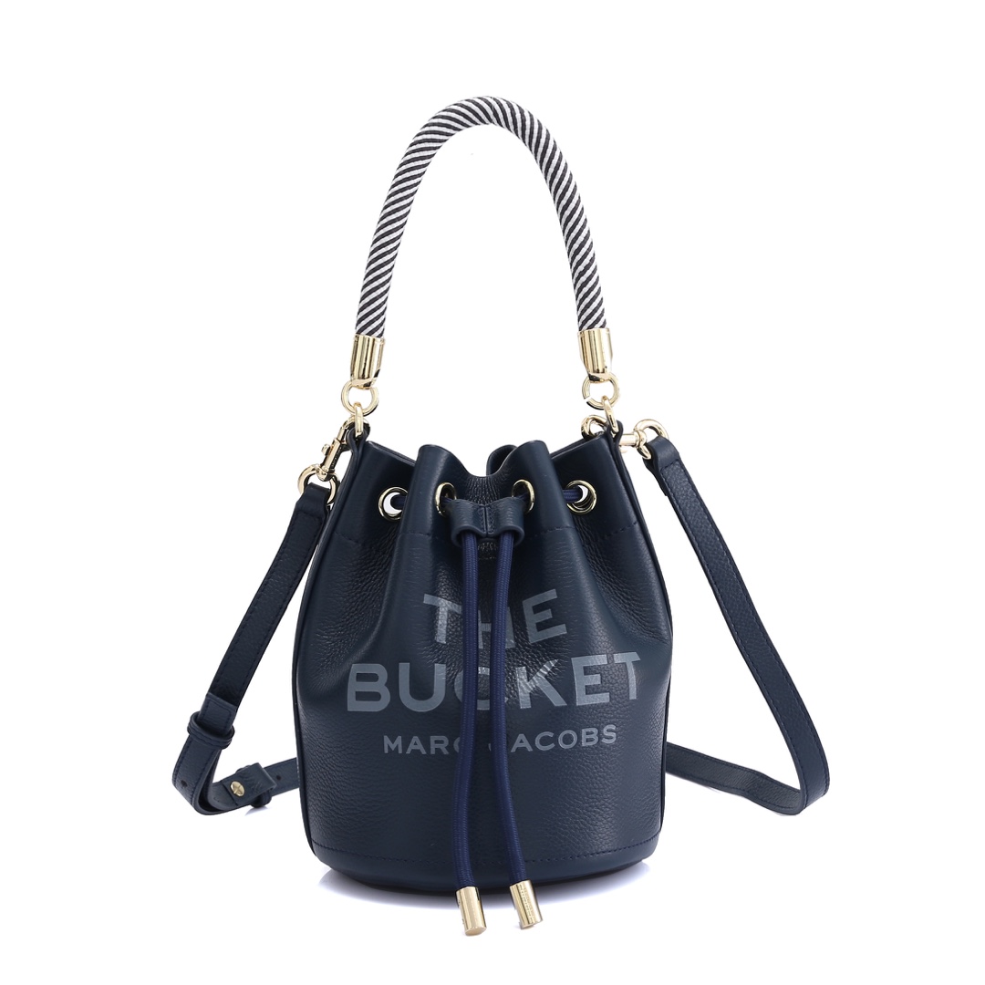 Elevate your accessory game with the stylish and functional Bright Grey The Bucket Bag by Marc Jacobs. This chic bucket bag is crafted with high-quality leather, featuring a trendy design and an adjustable strap for versatile carrying options. The iconic “THE BUCKET” print on the front adds a modern touch, making it a perfect choice for everyday use or special occasions. Its navy hue adds a sophisticated vibe to any outfit, while the rope handle adds a unique contrast.